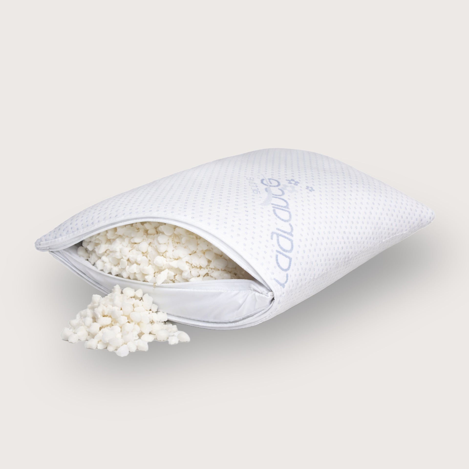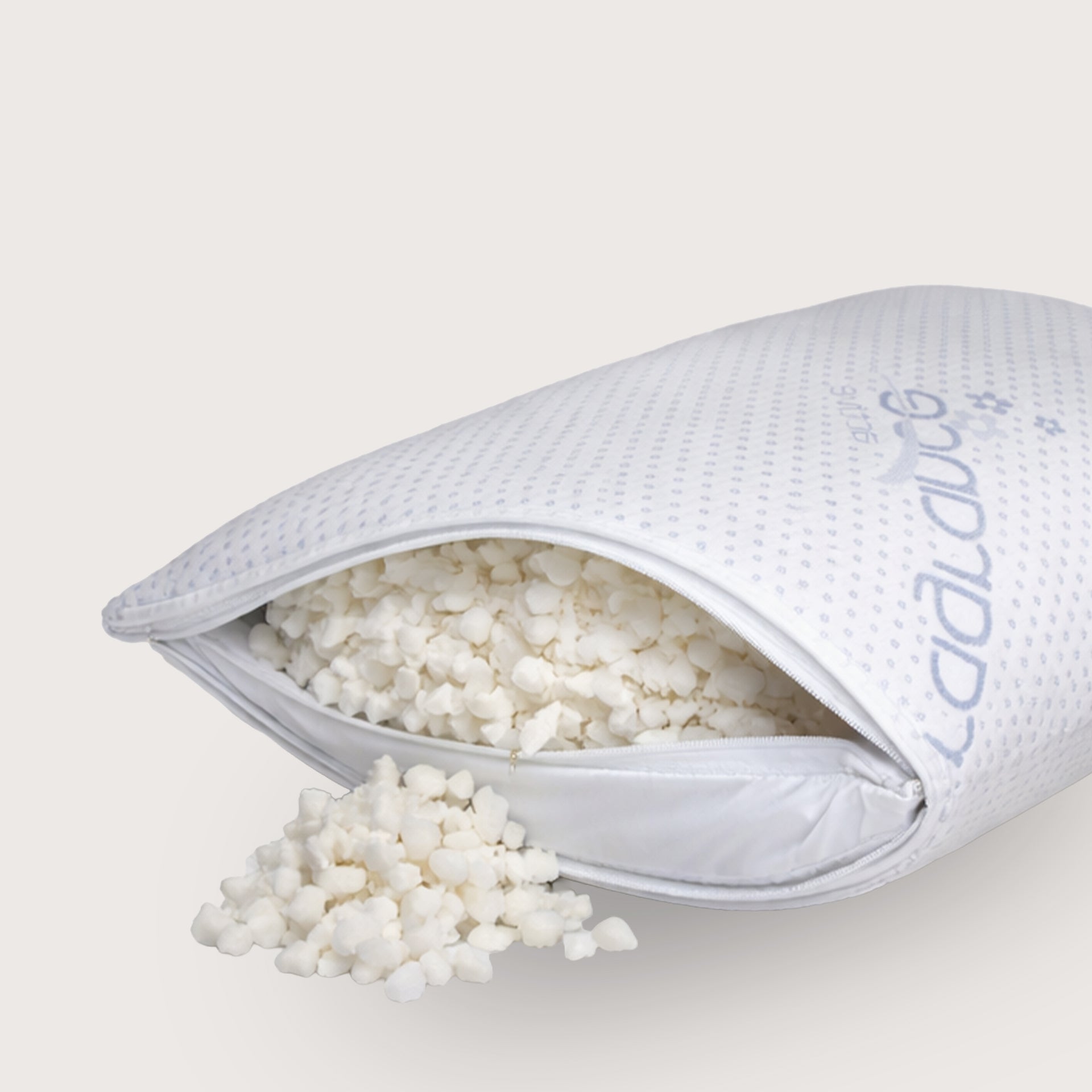 Вътрешният калъф е снабден с цип, който позволява лесно добавяне или премахване на част от мемори пяната, за да постигнете идеалната форма и опора за главата и врата. Пълнежът от гранулирана мемори пяна се нагажда към формата на тялото и спомага за правилното подравняване на гръбначния стълб.